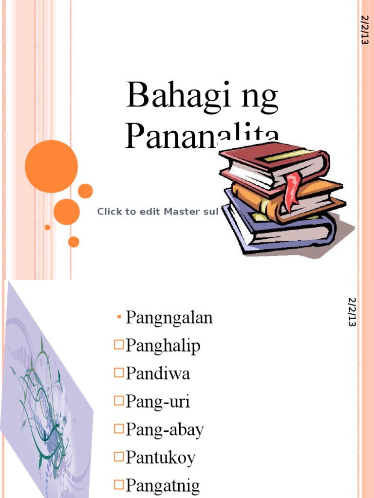 Bahagi ng Pananalita from image.slidesharecdn.com Quickly memorize the terms, phrases and much more. Study flashcards on filipino 10: Si aling marga ay bumili ng mantika. Mga bahagi ng pananalita parts of speech. ( part of speech ). Sa balarila, ang bahagi ng pananalita/panalita (sa ingles: Kadalasang nagsisimula ito sa malaking titik. Ang mga bahagi ng pananalita ay panngalan, panghalip, pandiwa, pangatnig.